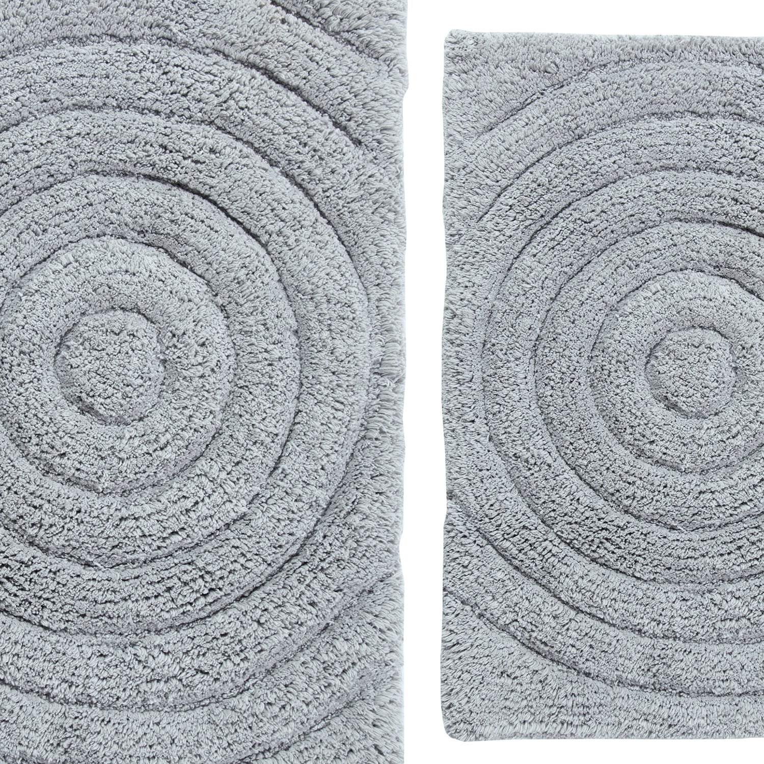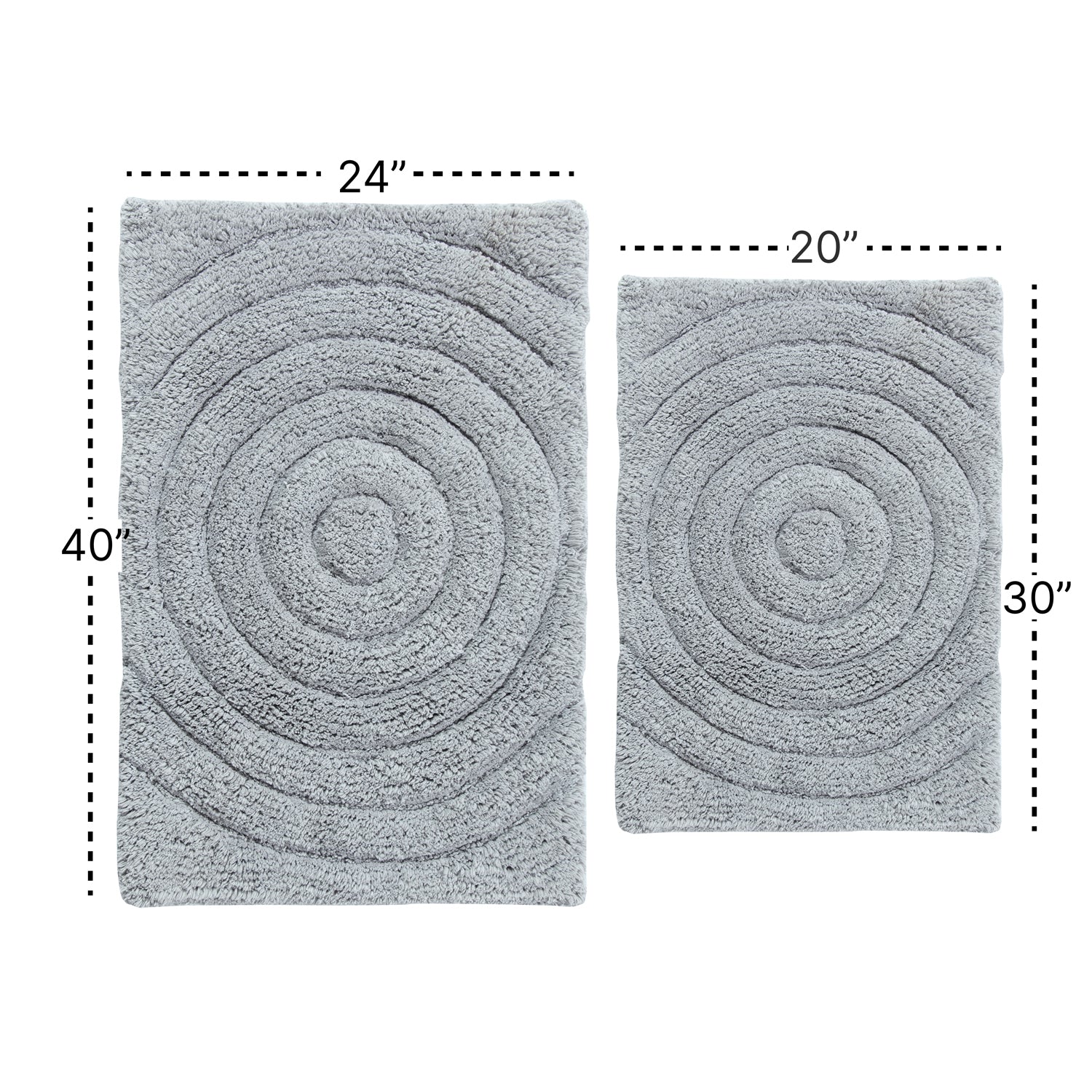 Knightsbridge Stylish And Comfortable Traditional Echo Design 2 PC Cotton Bath Rug Set 20"x30" & 24"x40" Silver
