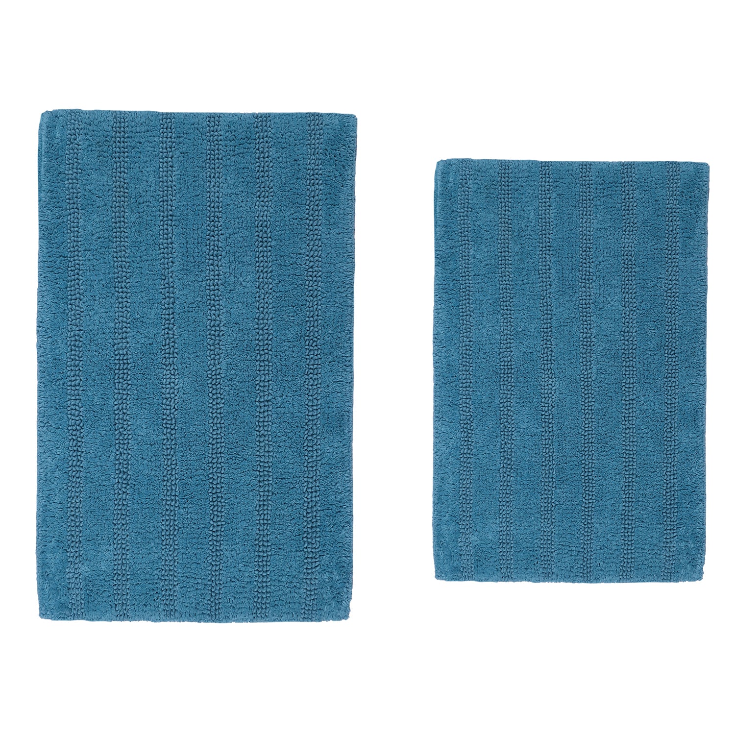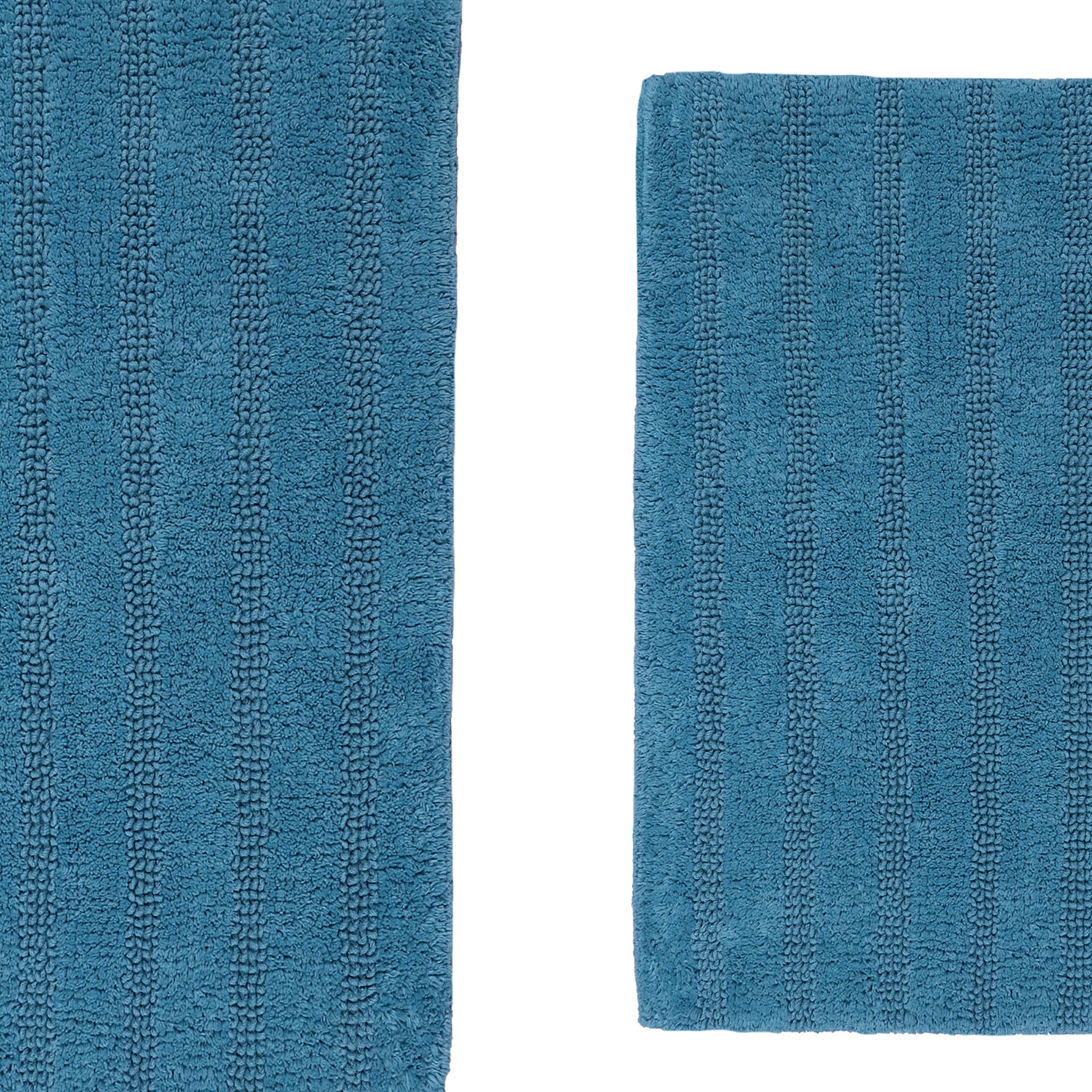 Knightsbridge Stylish And Comfortable Traditional Linear Design 2 PC Cotton Bath Rug Set 20"x30" & 24"x40" Aqua
