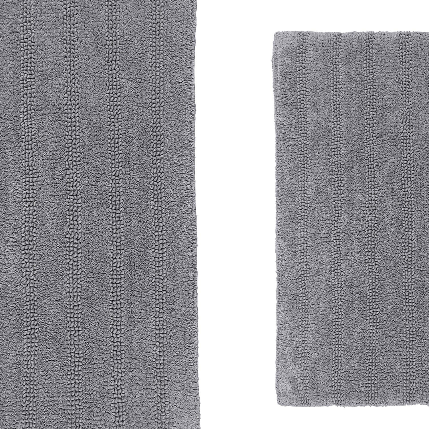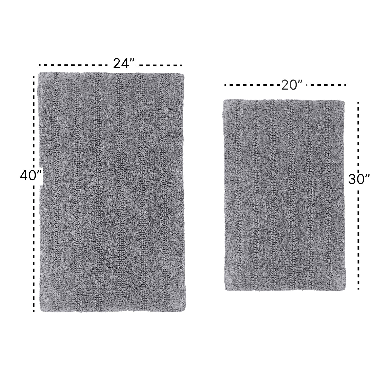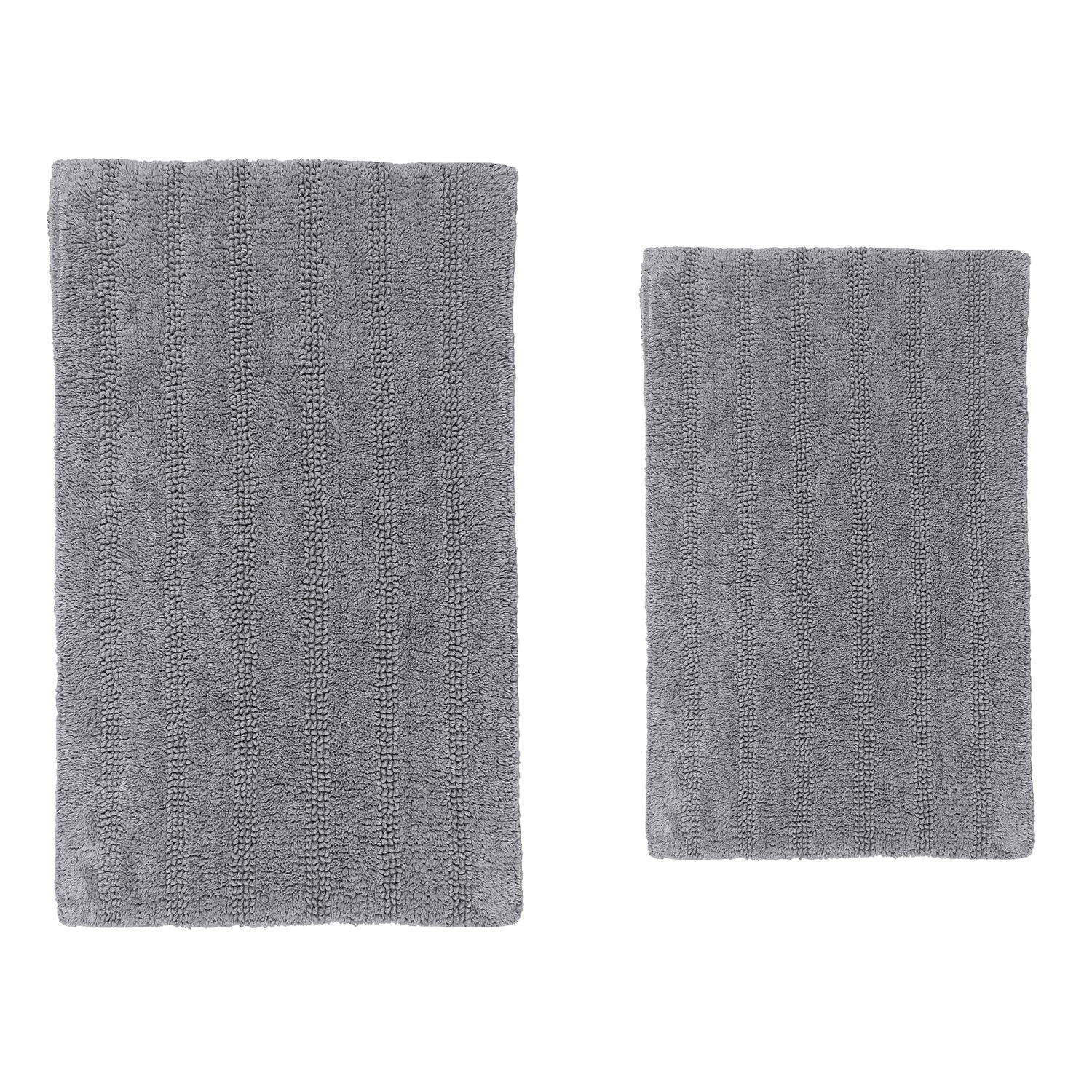 Knightsbridge Stylish And Comfortable Traditional Linear Design 2 PC Cotton Bath Rug Set 20"x30" & 24"x40" Silver