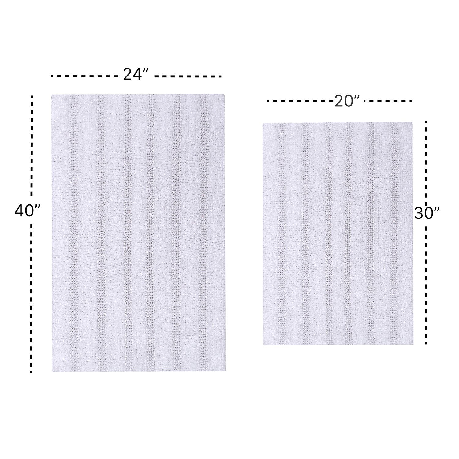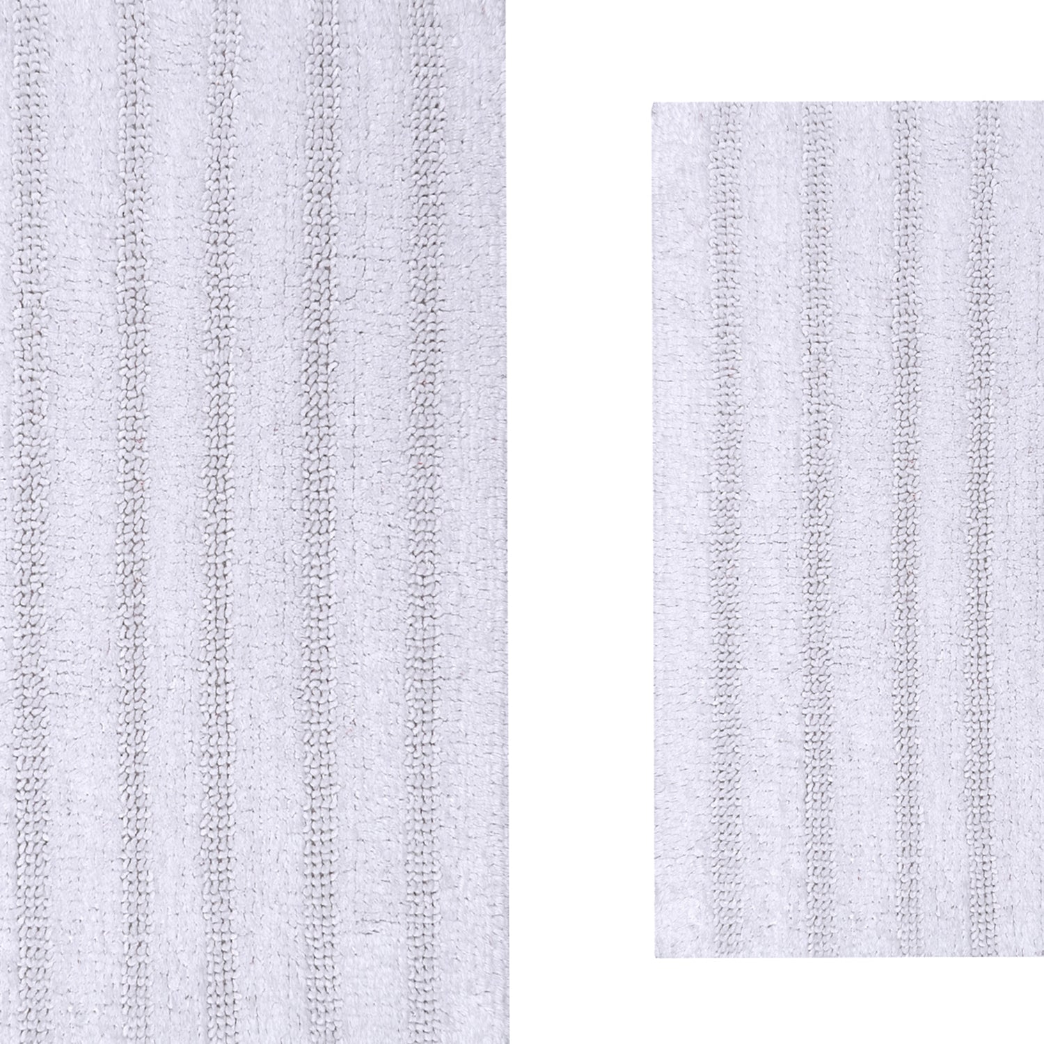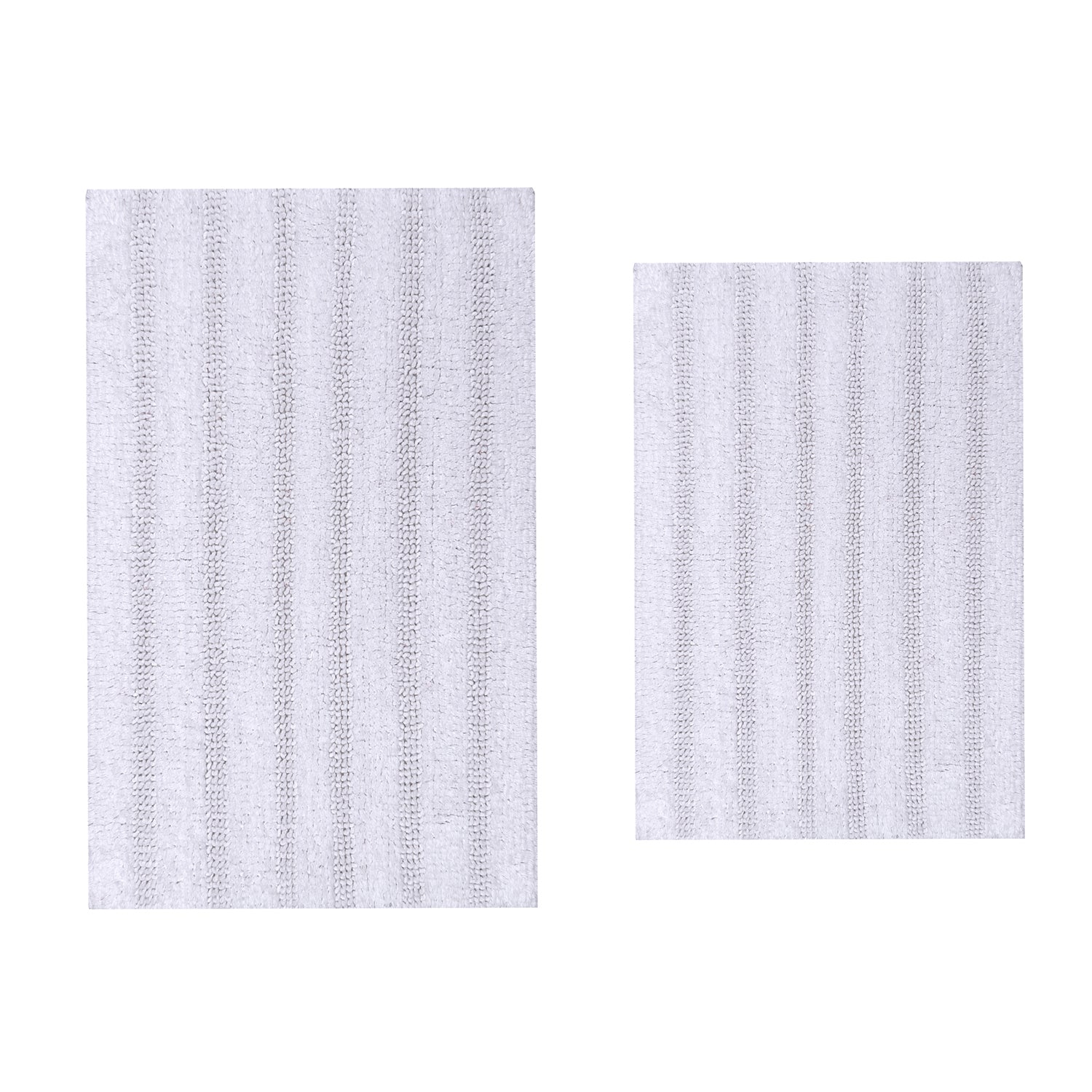 Knightsbridge Stylish And Comfortable Traditional Linear Design 2 PC Cotton Bath Rug Set 20"x30" & 24"x40" White