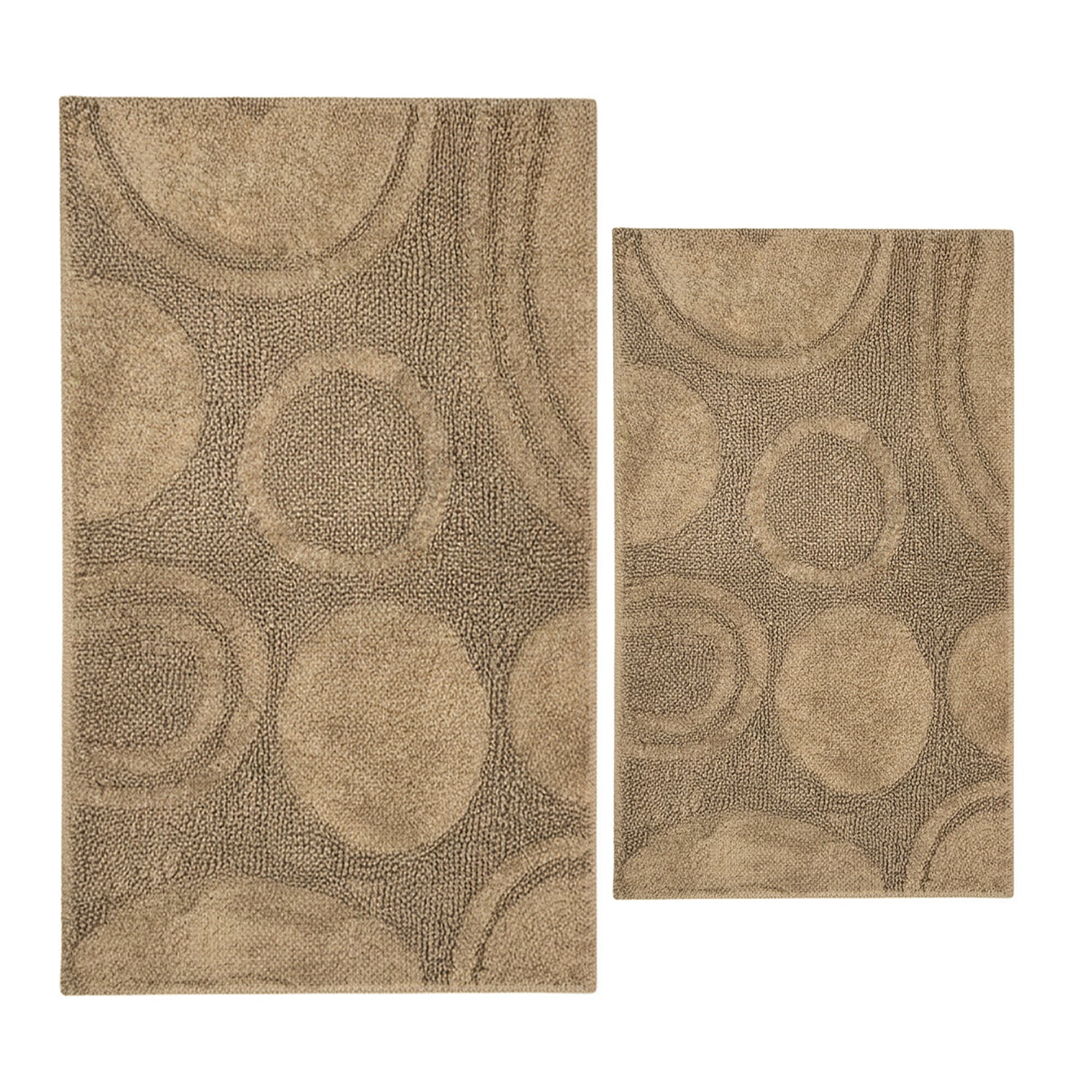 Knightsbridge Stylish And Comfortable Traditional Orbit Design 2 PC Cotton Bath Rug Set 20"x30" & 24"x40" Stone