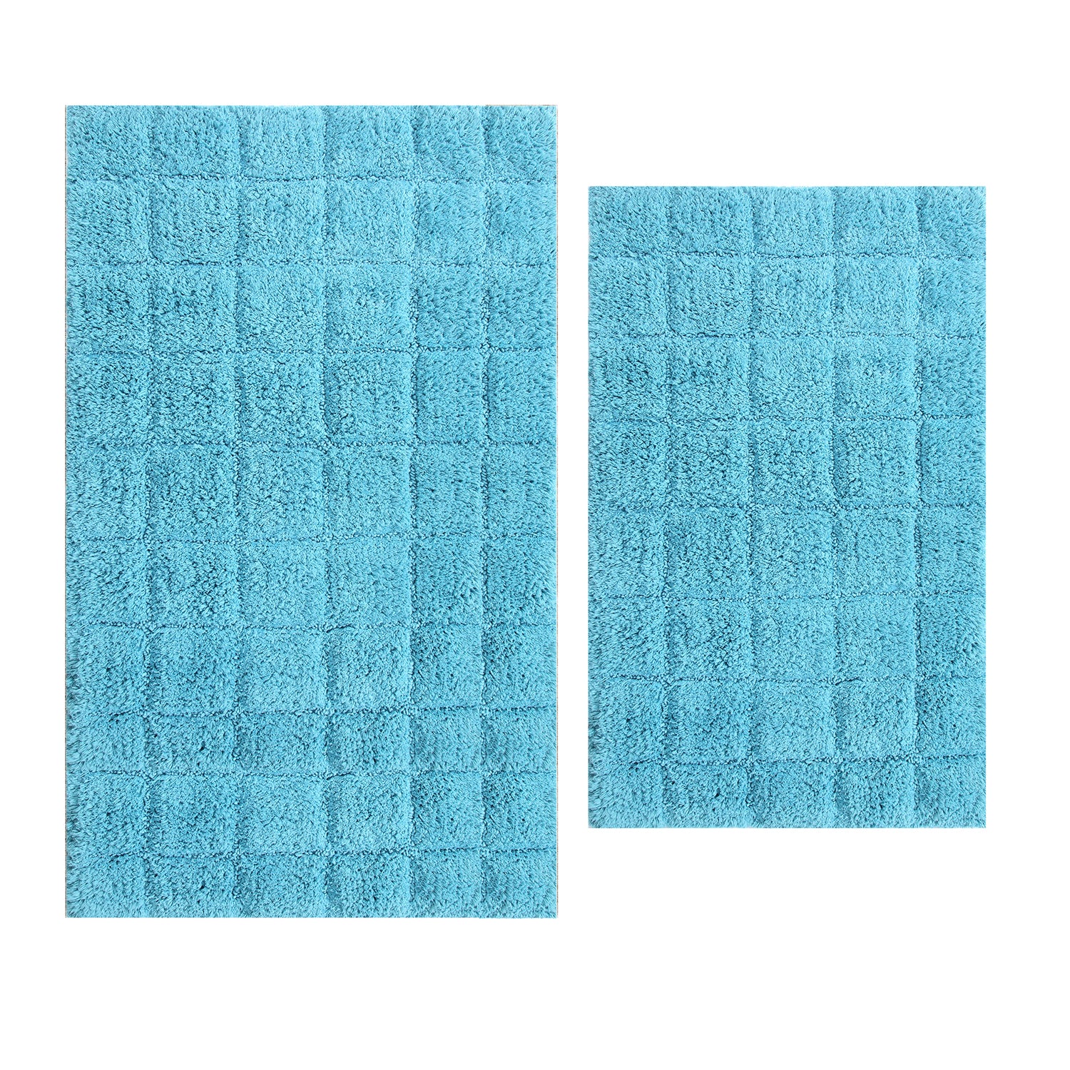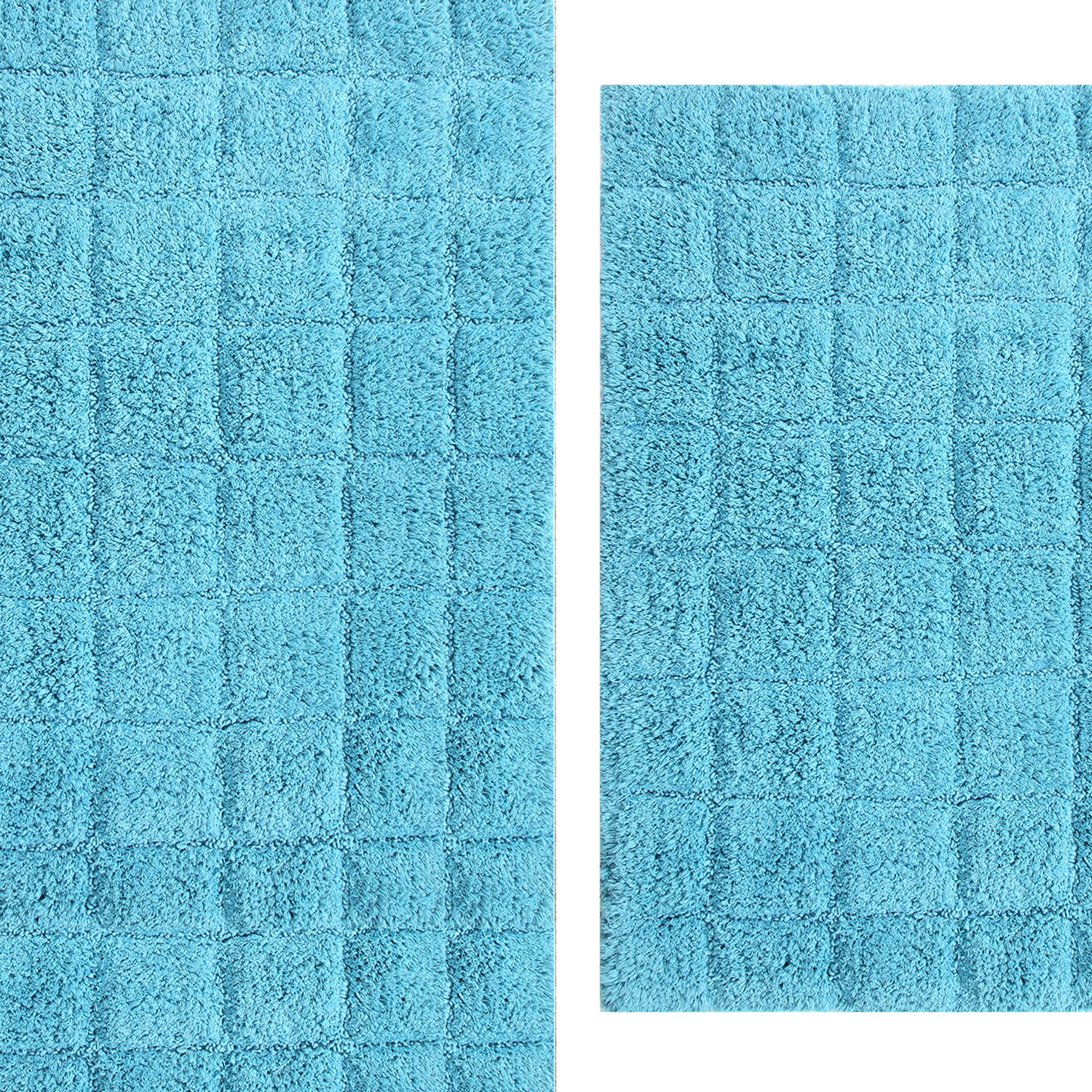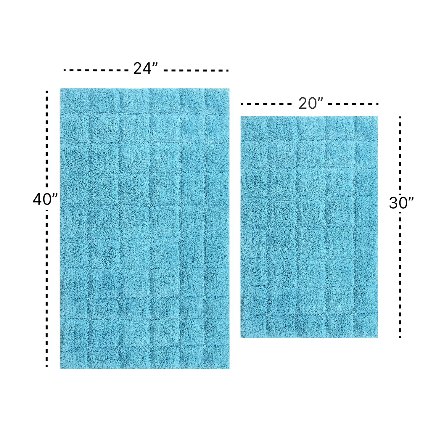 Refresh Your Bathroom With Knightsbridge Aqua Set: Brighten your bathroom with the Knightsbridge Stylish And Comfortable All Season Traditional Summer Tile Design 2 PC Cotton Bath Rug Set in Aqua. Includes 20" x 30" and 24" x 40" rugs, designed with soft cotton for luxurious comfort. The classic summer tile pattern in Aqua adds serenity and charm while blending with any décor style. Machine-made for durability, these rugs provide long-lasting softness, reversible functionality, and easy maintenance, ensuring your bathroom stays inviting, elegant, and comfortable all year round for family or guests.DURABLE MATERIAL: Crafted from premium cotton, the Aqua bath rugs measuring 20" x 30" and 24" x 40" are resilient and plush, providing long-lasting comfort while keeping their vibrant color and soft texture intact through daily use and frequent washing. INCLUDING ITEMS: This two-piece set includes a 20" x 30" and a 24" x 40" Aqua rug, offering coordinated style and comfort in multiple areas of your bathroom, ideal for use near the shower, tub, or vanity. VERSATILE DESIGN: The serene summer tile pattern in Aqua complements modern and traditional bathrooms alike, adding a decorative touch while providing functionality and soft cushioning for your feet. REVERSIBLE STYLE: Designed to be reversible, both sides provide the same luxurious texture and pattern, allowing you to switch sides for even wear, fresh appearance, and extended rug life. EASY MAINTENANCE: Machine washable for effortless cleaning, the Aqua rugs retain softness, color vibrancy, and shape even after repeated laundering, providing a practical and stylish addition to any bathroom.