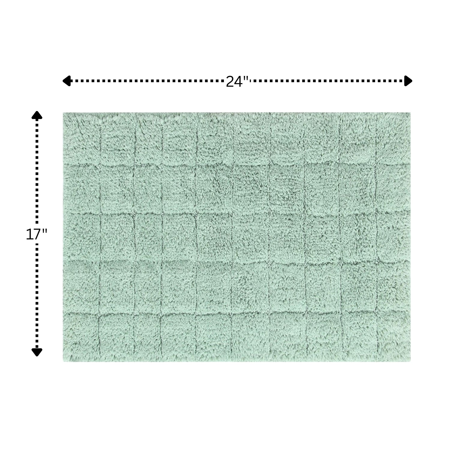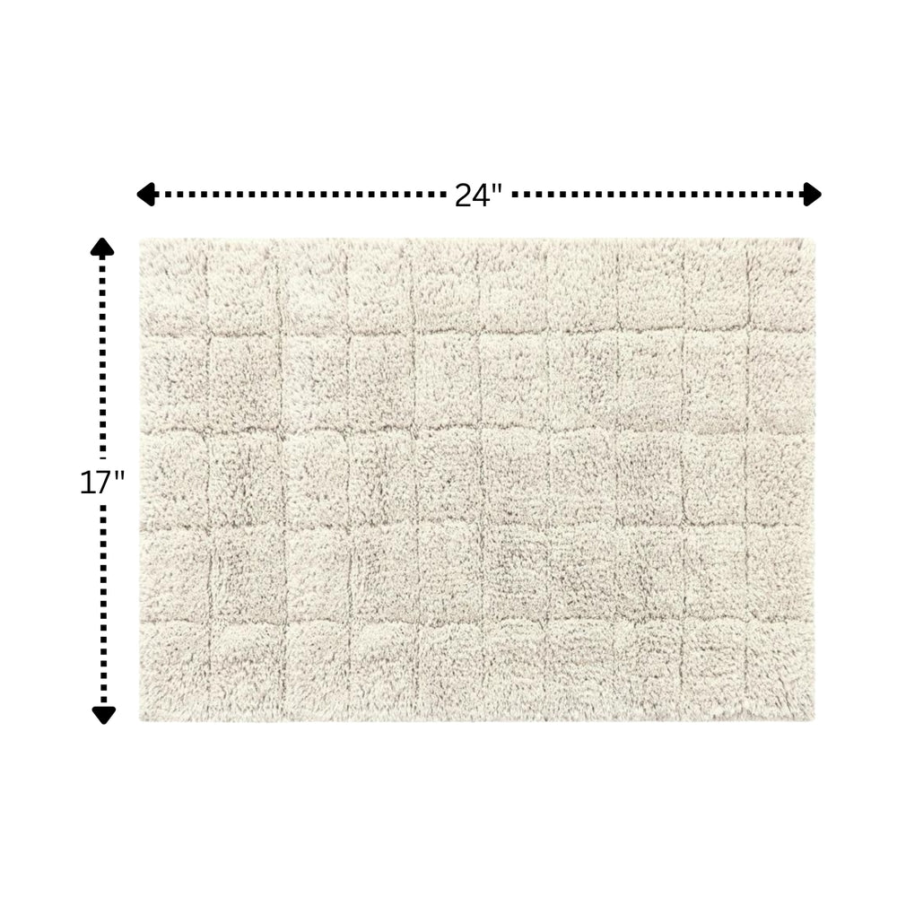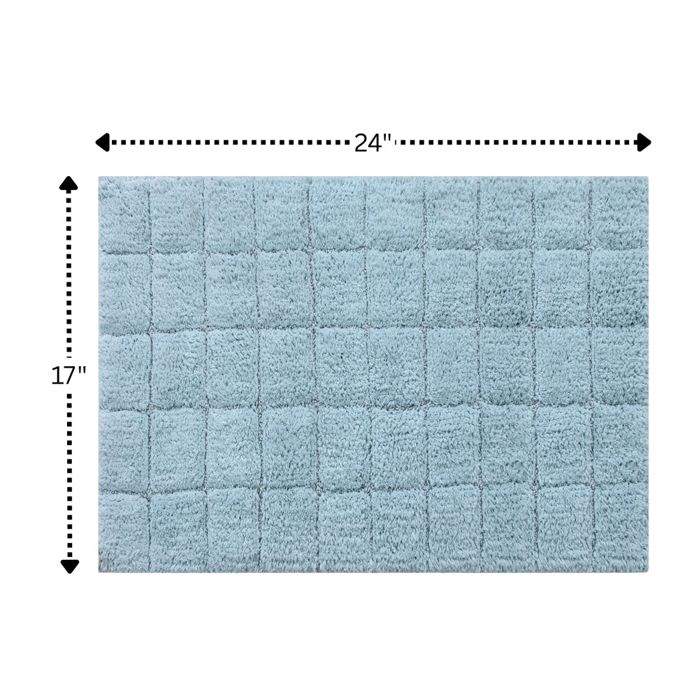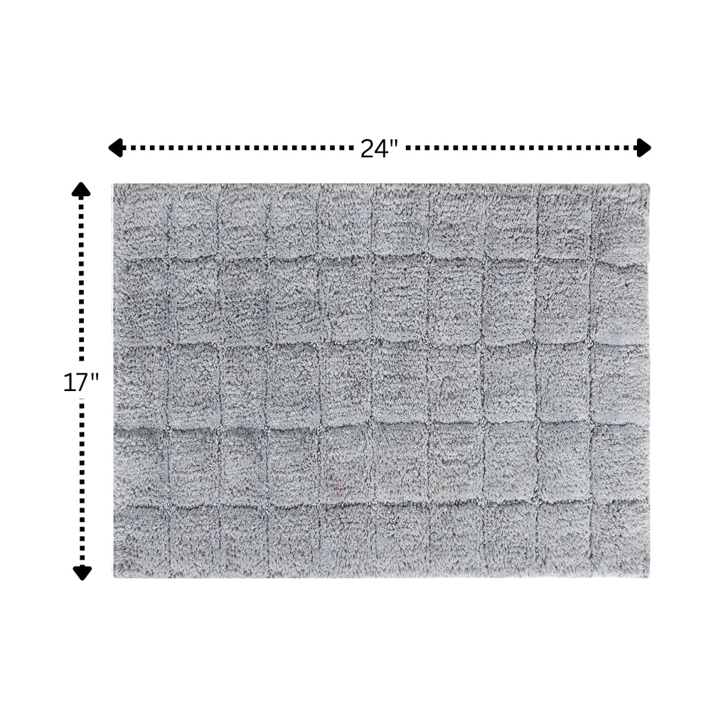 Luxurious and super soft, this cotton bath rug with a non skid back in a block design is a fine addition to your bathroom décor. The densely plush pile is fantastic for sinking your toes into while you're getting ready to start your day. Product Size: 17 x 24. Product Color: White, Ivory, Silver, Natural, Sage, Light Blue, Stone, Aqua.