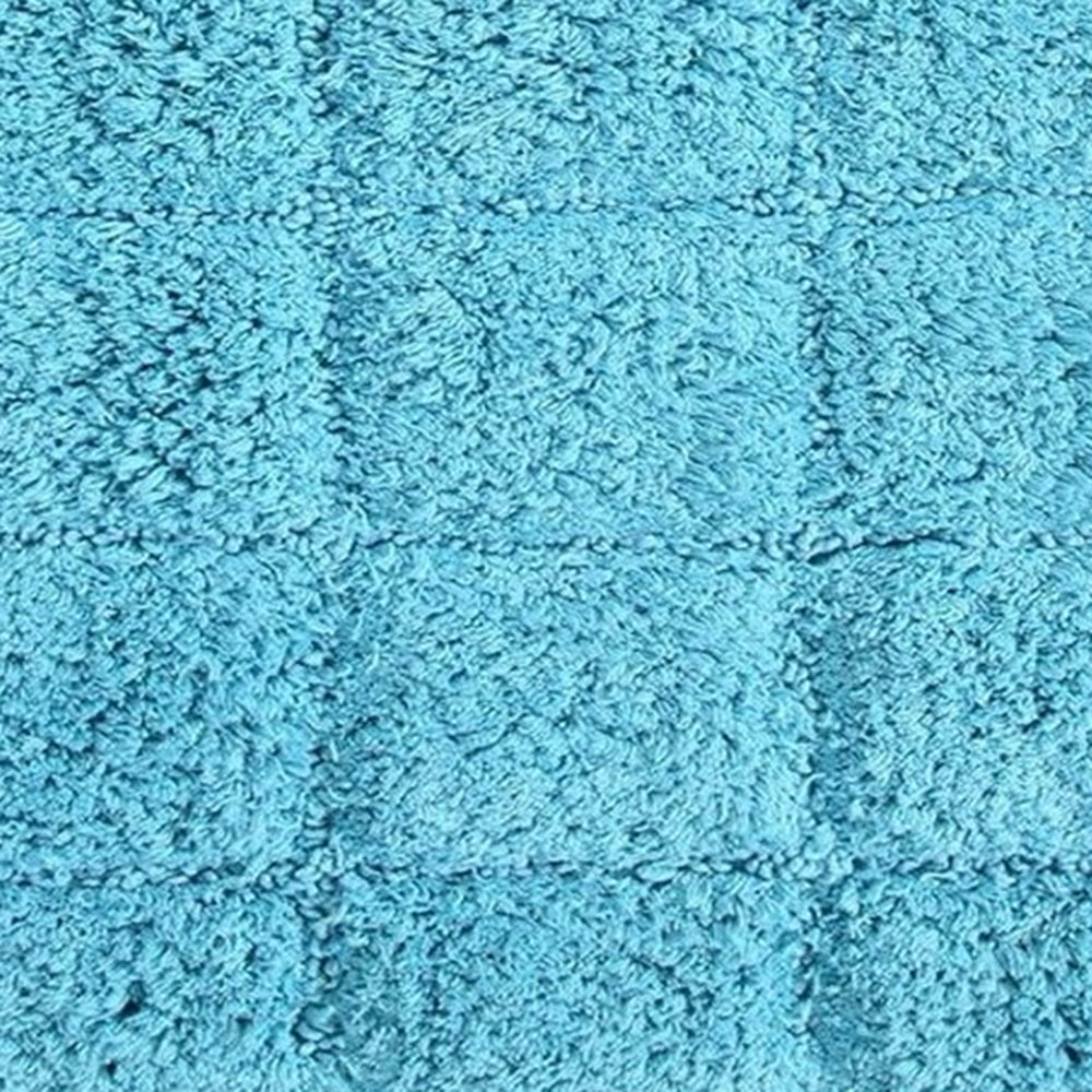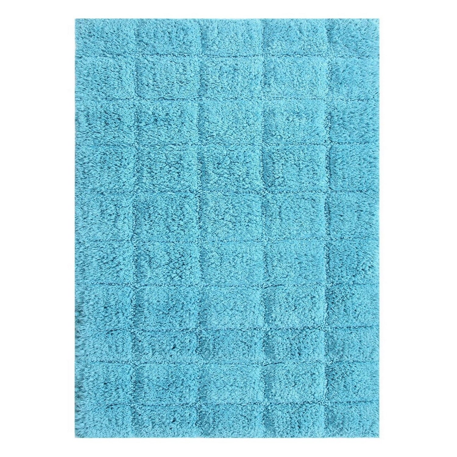 Luxurious and super soft, this cotton bath rug with a non skid back in a block design is a fine addition to your bathroom décor. The densely plush pile is fantastic for sinking your toes into while you're getting ready to start your day. Product Size: 21 x 34. Product Color: Aqua.Summer Tile Non Skid Back Bath Rug 21 x 34. Color: Aqua 220 GSF Non Skid Back Machine wash with like colors, tumble dry low heat. 100% Cotton