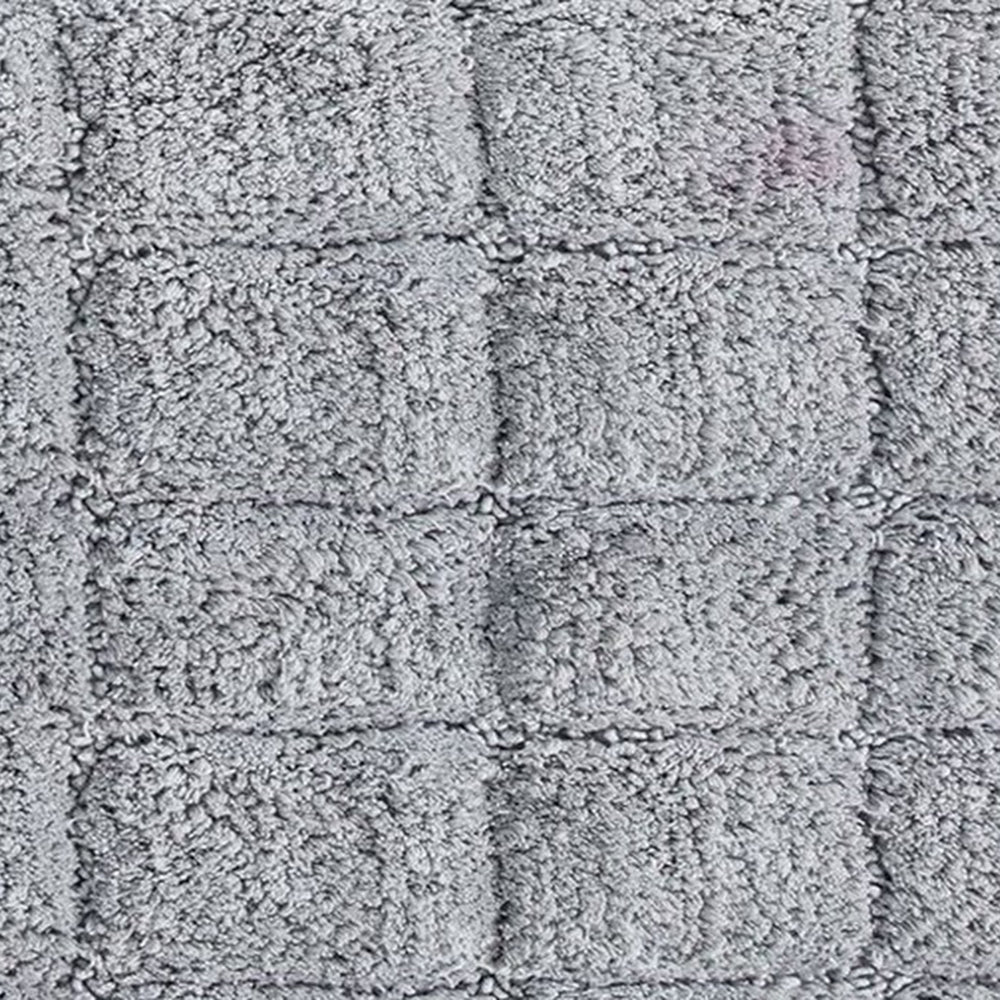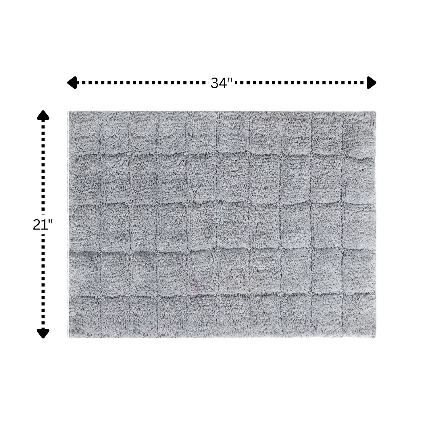 Luxurious and super soft, this cotton bath rug with a non skid back in a block design is a fine addition to your bathroom décor. The densely plush pile is fantastic for sinking your toes into while you're getting ready to start your day. Product Size: 21 x 34. Product Color: SilverSummer Tile Non Skid Back Bath Rug 21 x 34. Color: Silver 220 GSF Non Skid Back Machine wash with like colors, tumble dry low heat. 100% Cotton