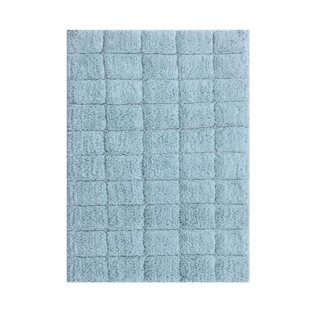 Luxurious and super soft, this cotton bath rug with a non skid back in a block design is a fine addition to your bathroom décor. The densely plush pile is fantastic for sinking your toes into while you're getting ready to start your day. Product Size: 24 x 40. Product Color: Light Blue.