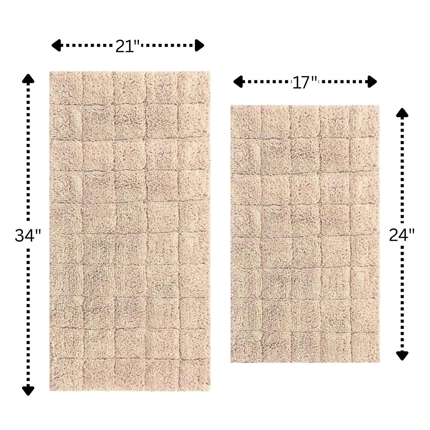 Luxurious and super soft this 2 pc cotton bath rug set with a skid resistant back is a fine addition to your bathroom décor. The densely plush pile on this rug is fantastic for sinking your toes into while you're getting ready for the morning. Available size: 17x24 and 21x34". Color: Natural.Summer Tile 220 GSF Non Skid Back Bath Rug Set - 2- Piece - 17x24 and 21x34", Color: Natural Luxurious and super soft this 2 pc cotton bath rug set with a skid resistant back. Machine wash with like colors, tumble dry low heat. 2 Piece Bath Rug Set. 220 GSF Non Skid Back.