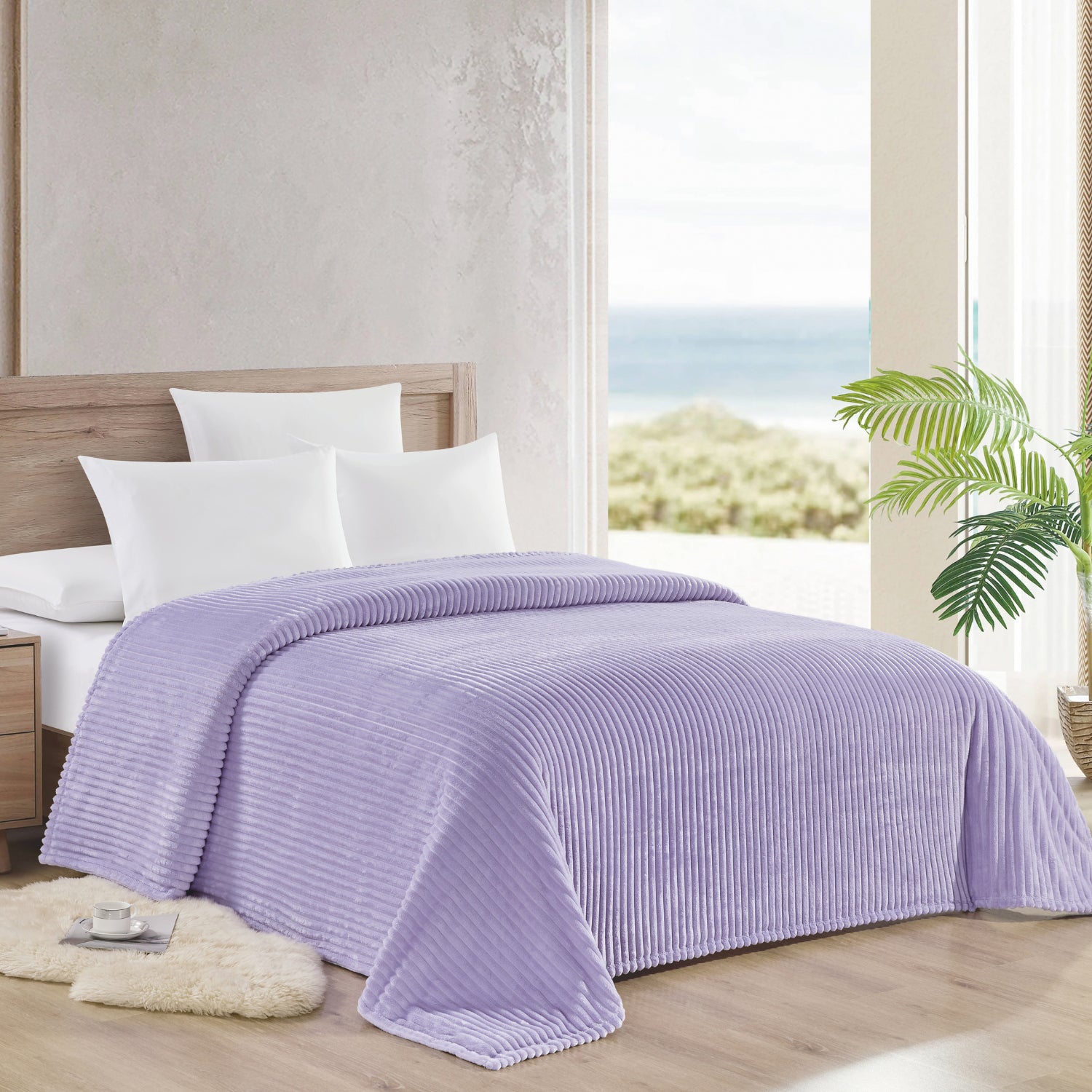 Plazatex Striata Lined Oversized All Season 100% Polyester Blanket Queen Lilac