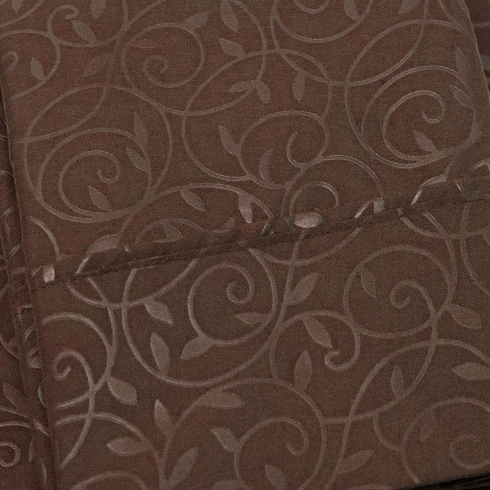 Plazatex Vine Print 90GSM Brushed Microfiber Soft Wrinkle Free Sheet Set - Queen 60x80", Chocolate