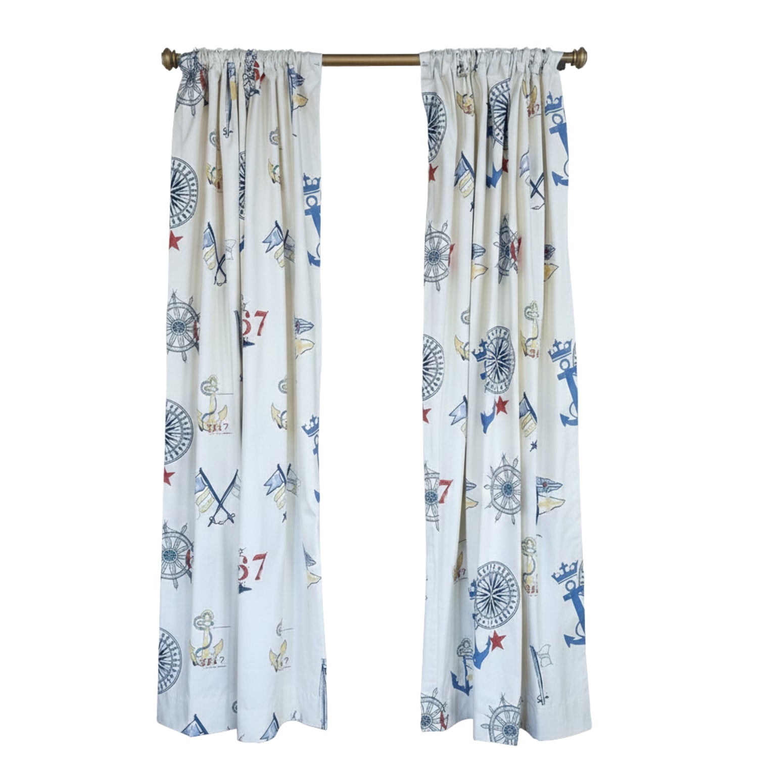 RLF Home Ralph Lauren Navigator 100% Cotton Rod Pocket Window Curtain set of 2 Panels 100" x 63" Off-White