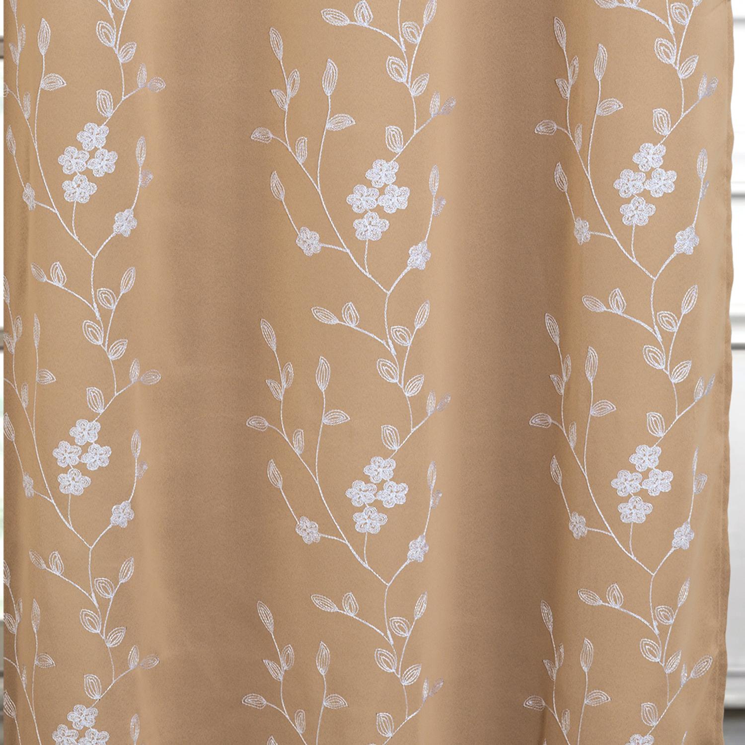 RT Designer Collection Lilian Embroidered Blackout Luxurious Decorative Grommet Curtain Panel Taupe