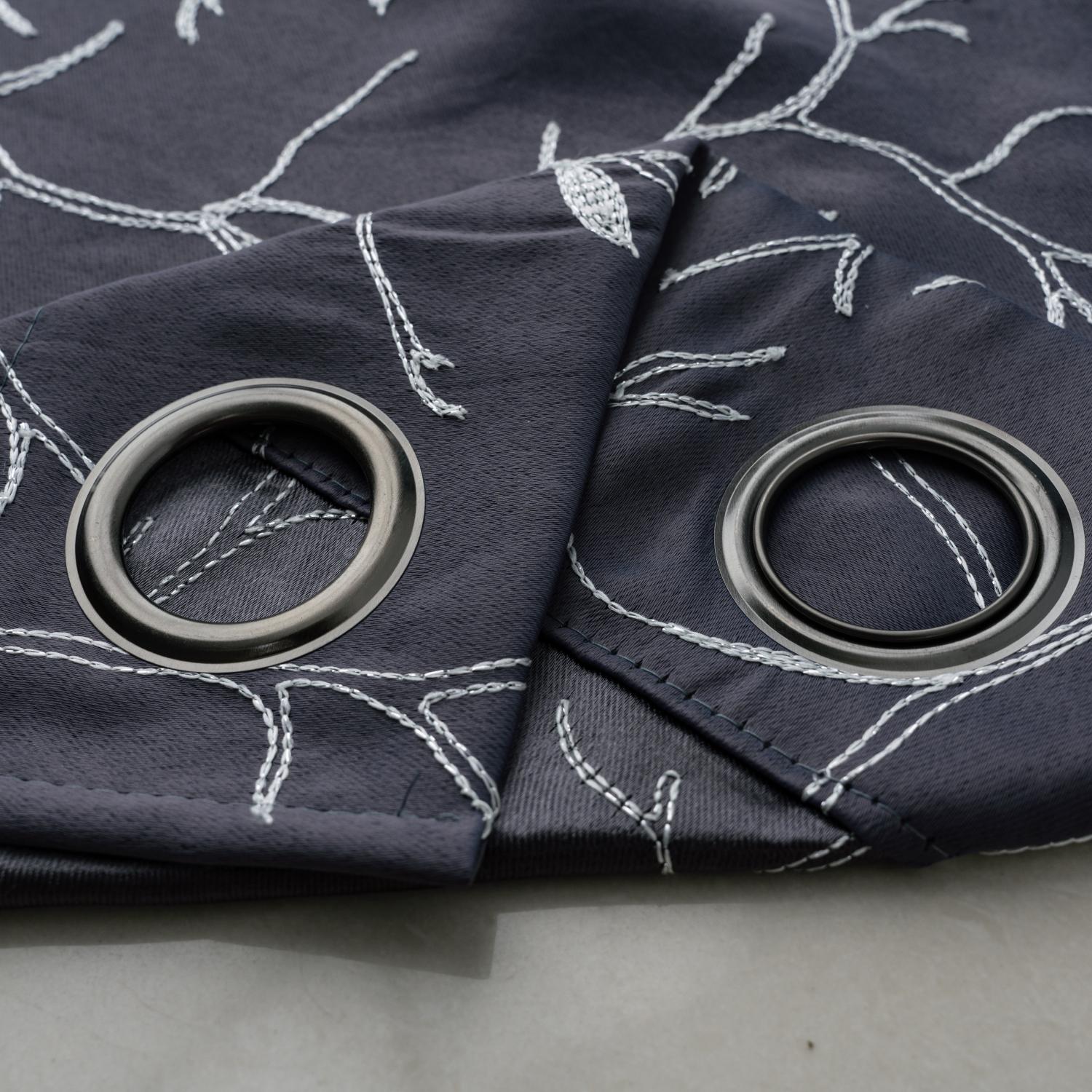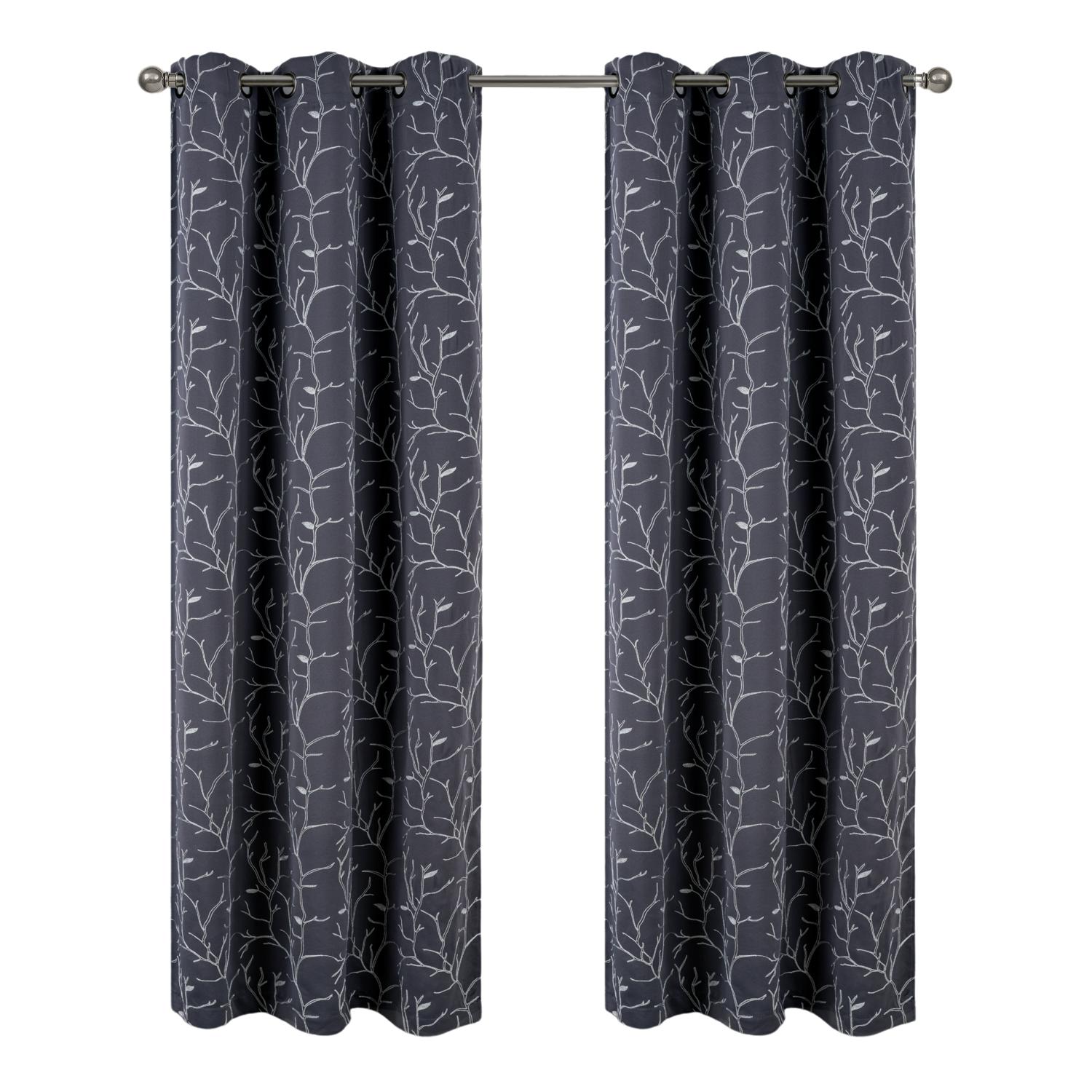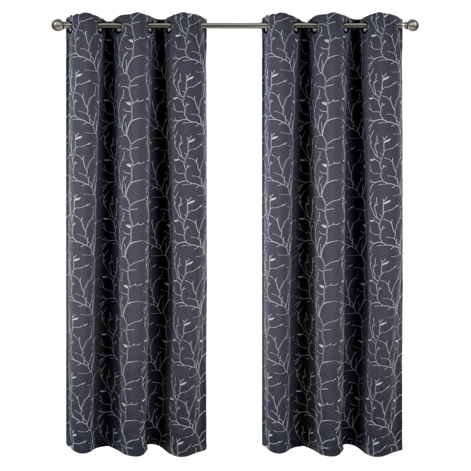 RT Designer Collection Luciana Embroidered Blackout Luxurious Decorative Grommet Curtain Panel Charcoal