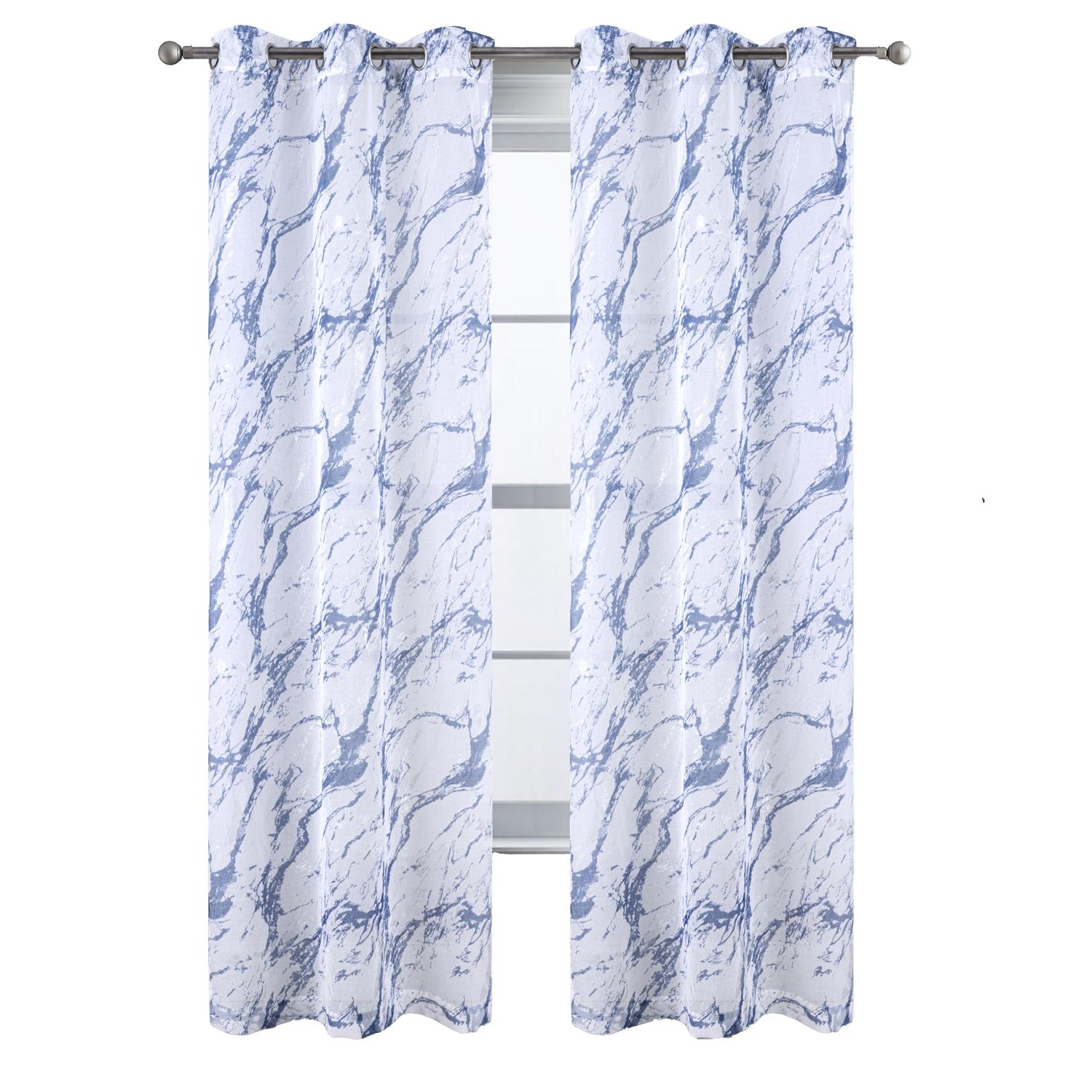 RT Designers Collection Marble Grommet Metallic Sheer Printed Doily Curtain Panel Blue