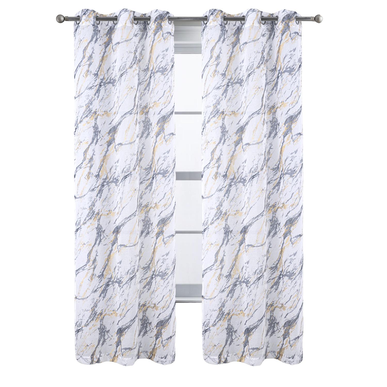 RT Designers Collection Marble Grommet Metallic Sheer Printed Doily Curtain Panel Grey