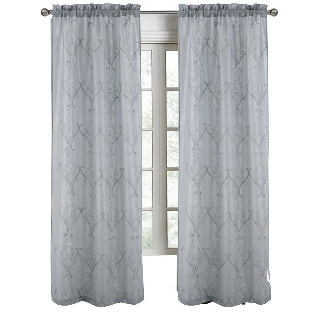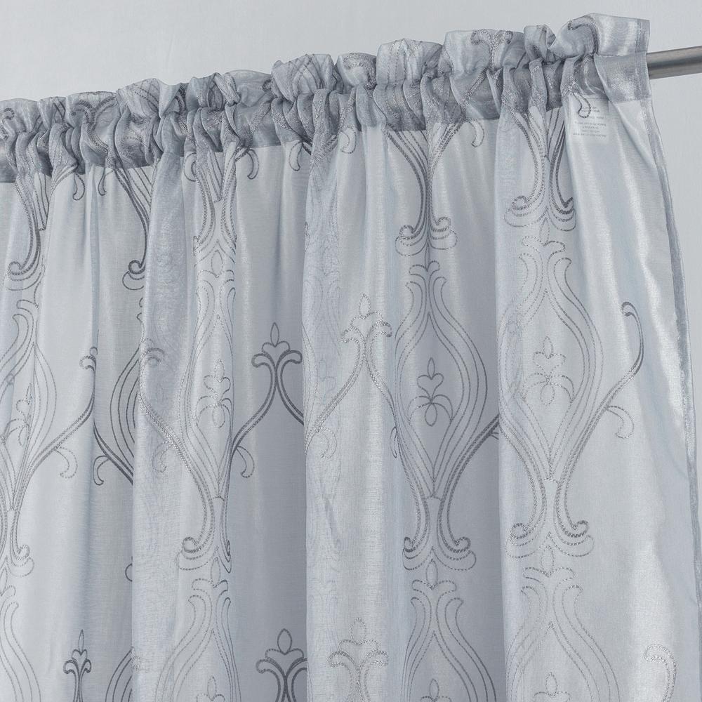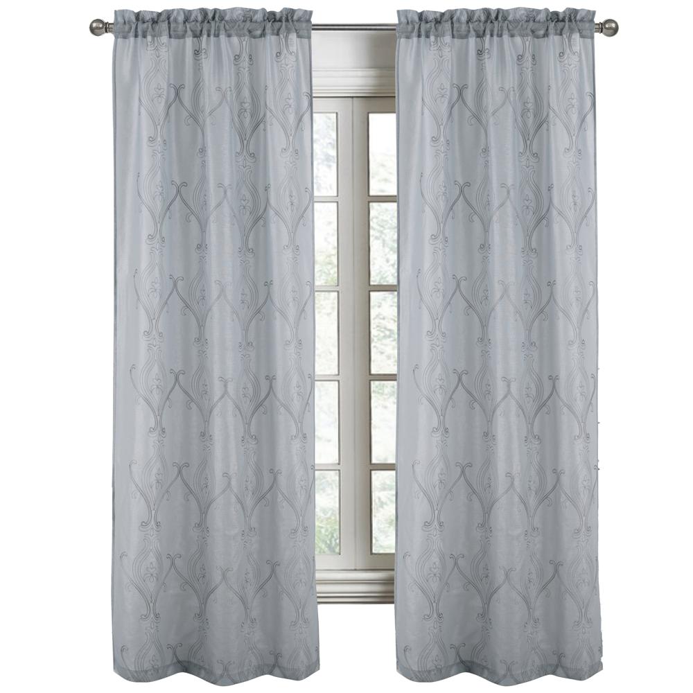 RT Designers Collection Pearl Emb Metallic Doily Rod Pocket Room Darkening Window Curtain Panel for Bedroom Silver