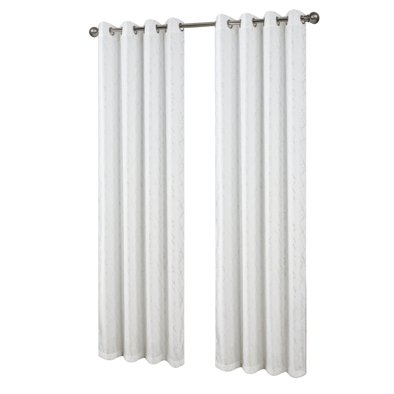 RT Designers Collection Soho Foil Jacquard Polyester Window Curtain Grommet Panel 52" x 90" White/Silver