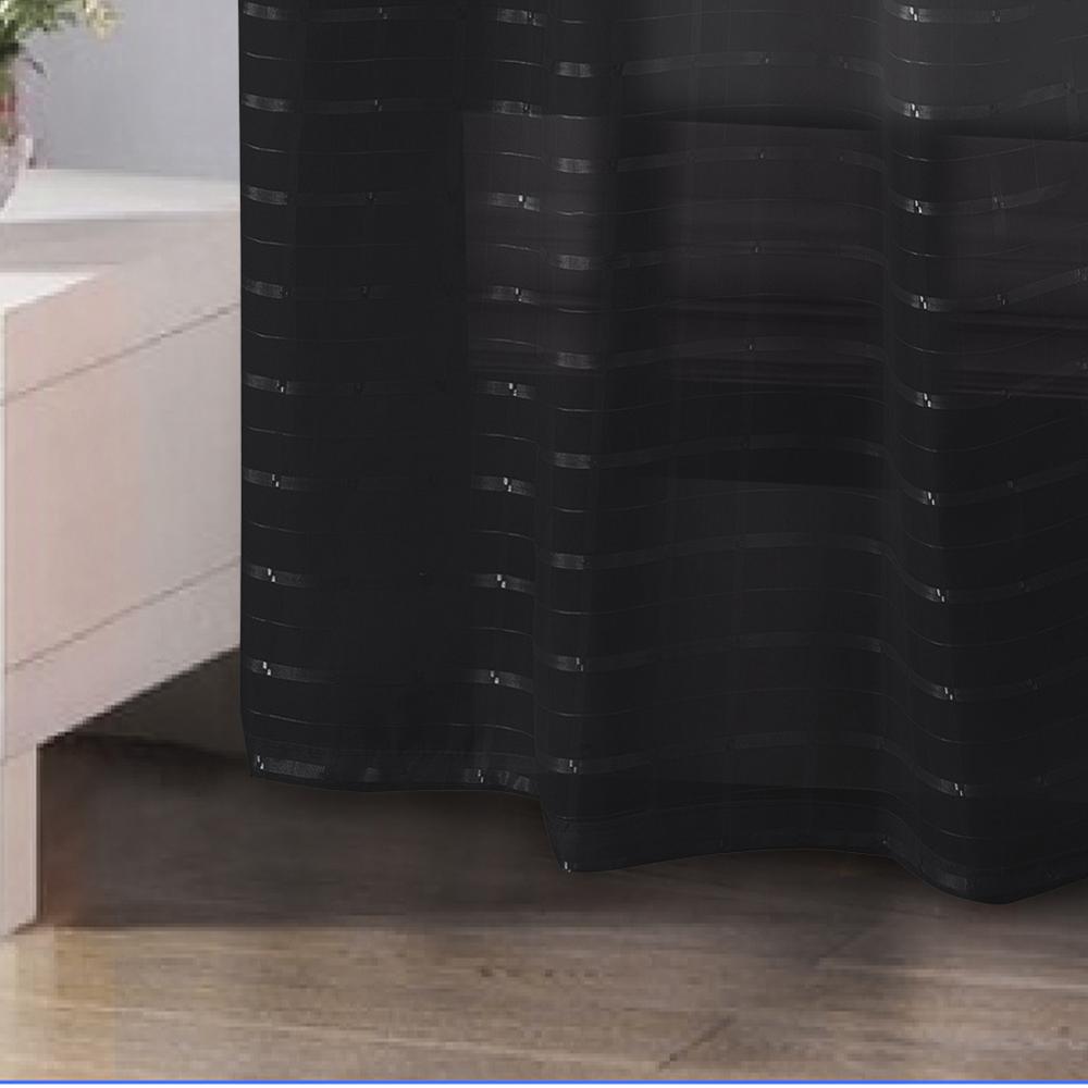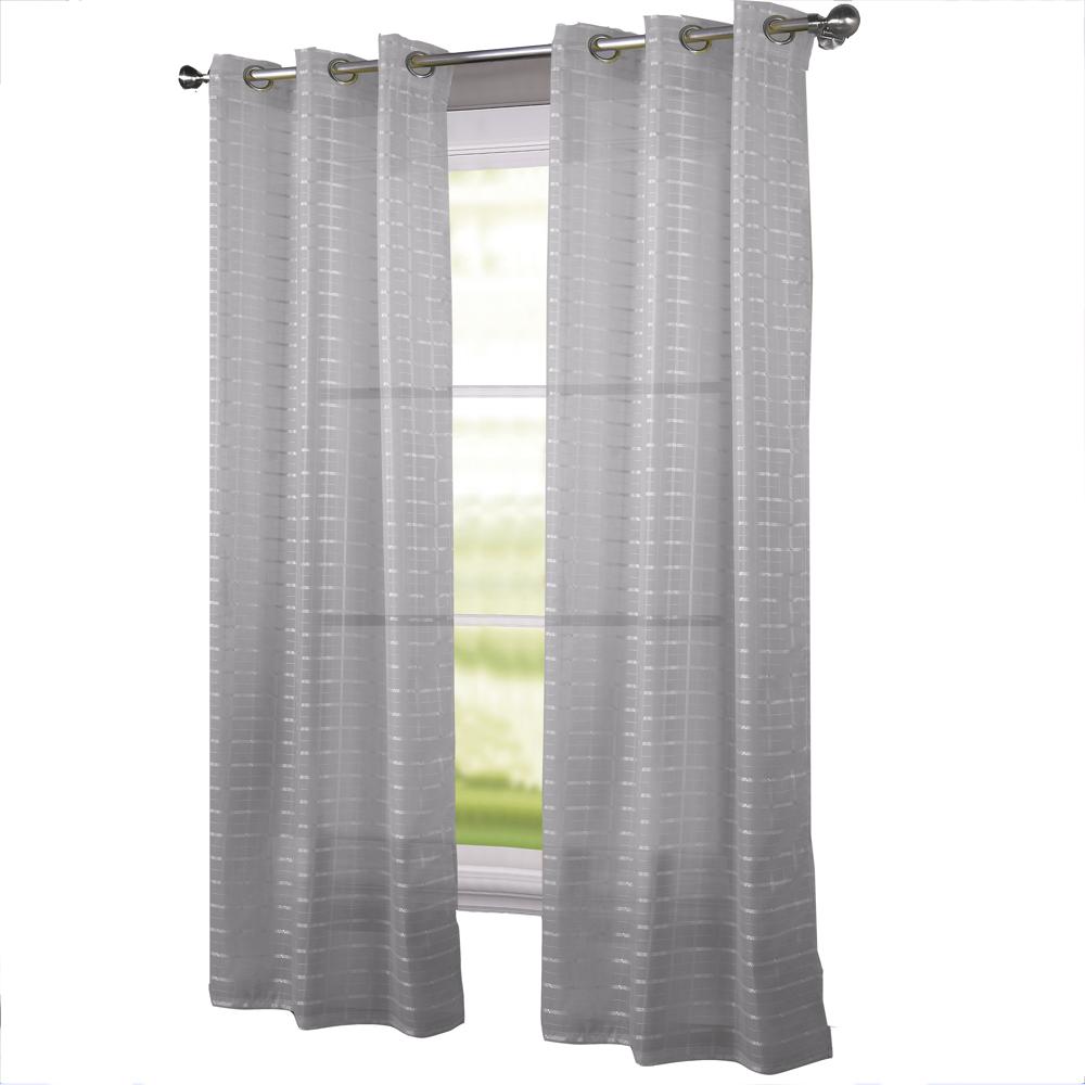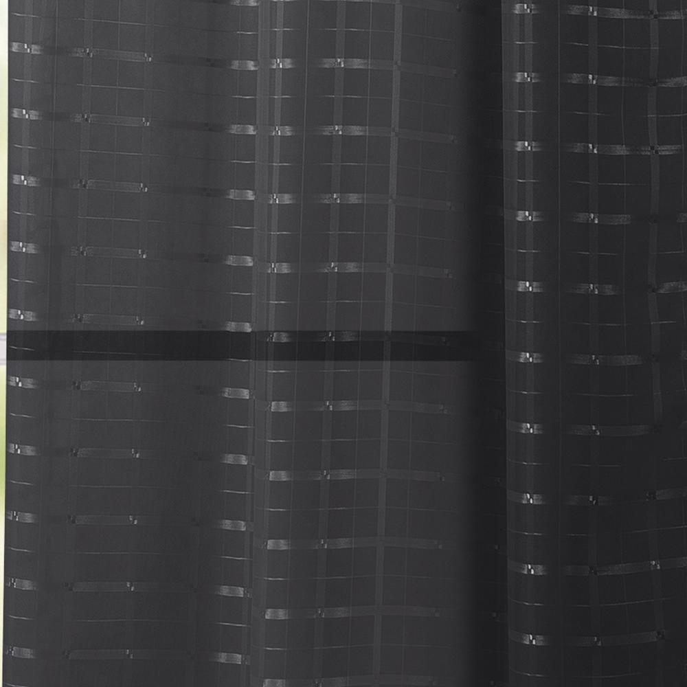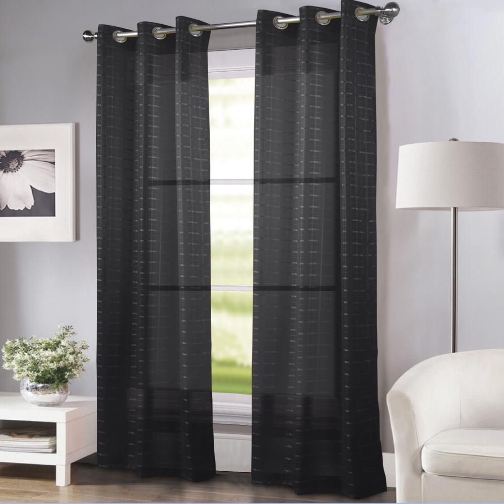 The RT Designers Collection wanda box voile grommet panel is a beautiful addition to your home decor with a subtle geometric pattern. It features 8 shiny silver metal grommets for easy hanging. The panel is machine washable and provides a light-filtering and refreshing new look. This geometric pattern design grommet panel is a versatile curtain panel that can be used in bedrooms, living rooms, and dining rooms. This curtain is made with 100% polyester. It can help to block out light, provide privacy, and add a touch of style to your home décor. Measures: 54" x 90". Color: Black.PREMIUM QUALITY MATERIAL: The curtain is made of 100% polyester for durability and long-lasting. Perfect for an elegant look DESIGN AND PRIVACY: Bring a touch of elegance into your home with these curtains. The extra layer gently softens the incoming light while helping you maintain your privacy VERSATILE: This window curtain can be used in bedrooms, living rooms, and dining rooms for an elegant look. It's versatile design can adore any window you want EASY TO INSTALL: This window curtain features 8 silver grommets for easy installation and removal CARE INSTRUCTION: This window curtain is machine washable, making it easy to keep clean