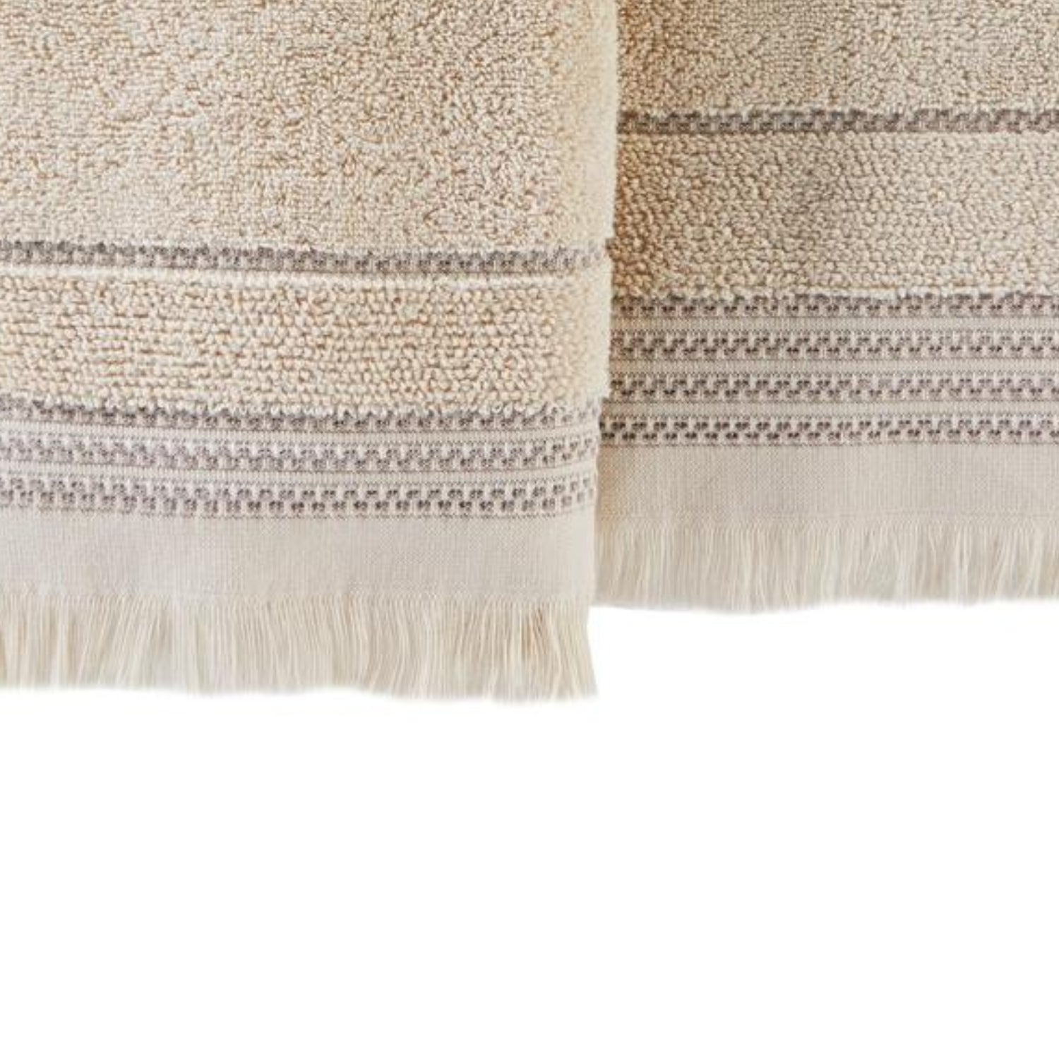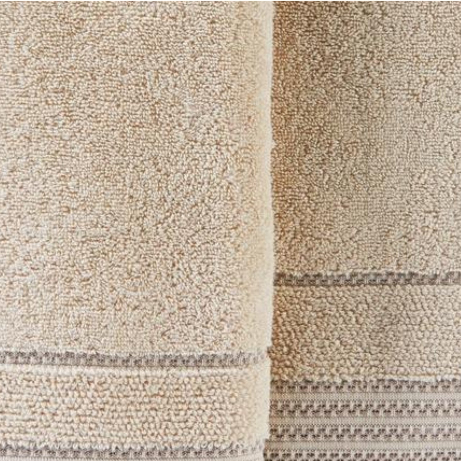 Saturday Knight Ltd Jude Fringe Jacquard Stripes Bath Hand Towel Set - 2 Piece - 16x26", Taupe