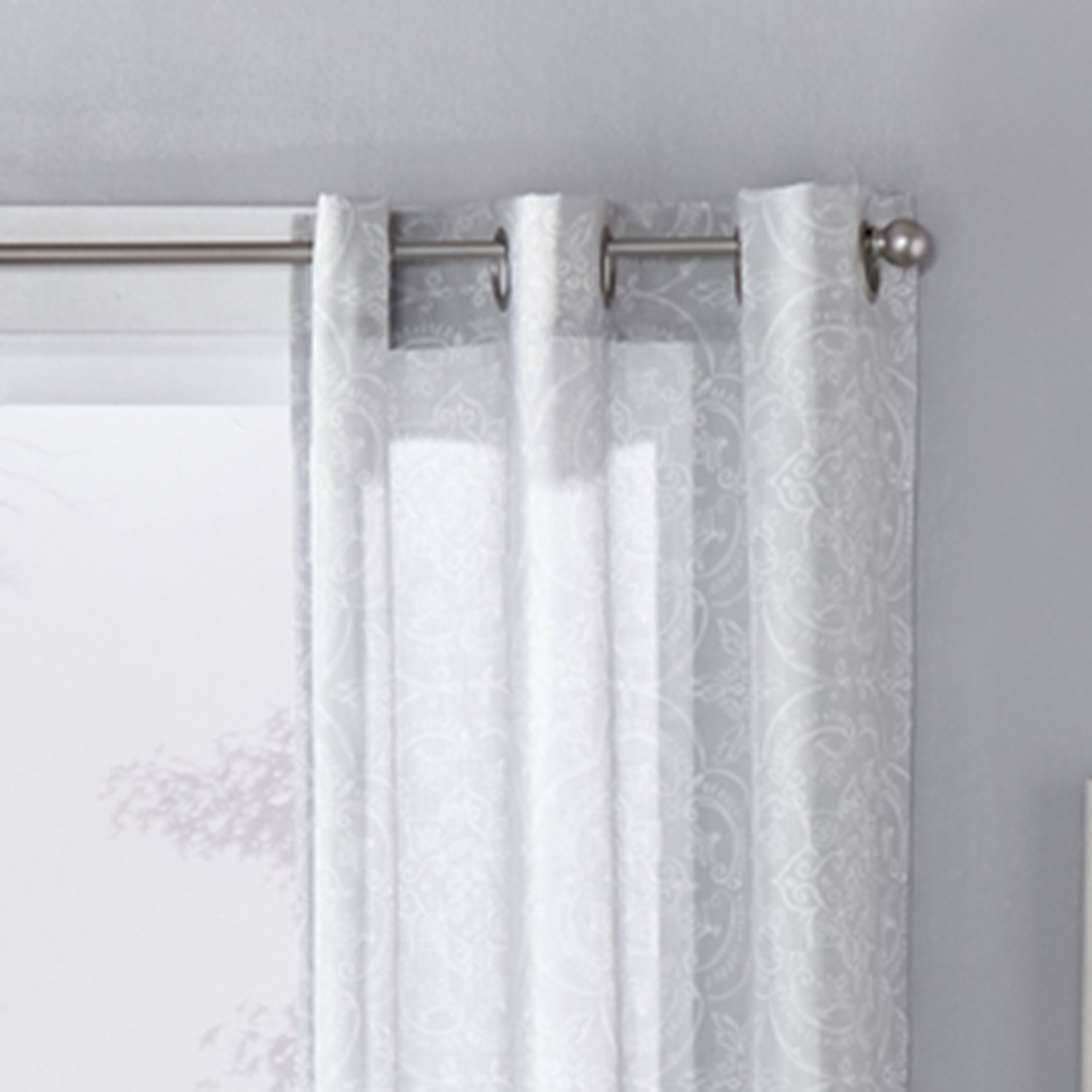 Add a soft touch to any room with the understated hues of the Salvatore window panel. A sophisticated medallion design, printed on a slub-weave fabric that allows light through, but blocks UV rays that can cause fading will add an artful as well as practical update to your window. Protect your furniture and flooring from the day to day exposure to UV rays that cause fading with SunSafe window curtains from SKL Home. SunSafe is an innovative technique that allows light in but keeps harmful UV rays out. SunSafe one light filtering window panel with a UPF testing of 50+, blocking up to 98% of UV rays, the highest rating in the class. Not only are they UV protective, SunSafe curtains are fade resistant and longevity. Combining stylish design with this innovative technique, SunSafe from SKL Home offers both function and fashion. Brushed nickel look grommets fit rods up to 1.25" diameter. Available in size 40x63" and 40x84". Made from 100% Polyester. Color: Dove Gray. Care instruction: Easy care - Machine washable.Salvatore Sophisticated Design and Slub Weave Fabric SunSafe Window Panel. Available in size 40x63" and 40x84". Color: Dove Gray. Made from 100% Polyester. SunSafe window panel with a UPF testing of 50+, blocking up to 98% of UV rays. Brushed nickel look grommets fit rods up to 1.25" diameter. Care instruction: Easy care - Machine washable.