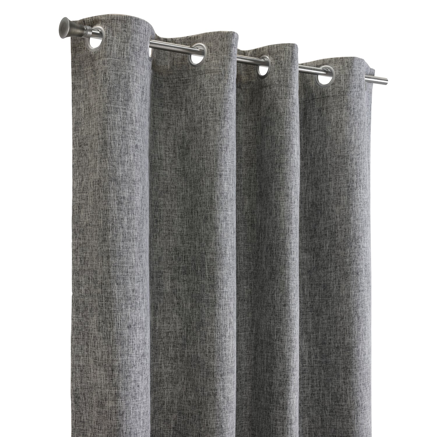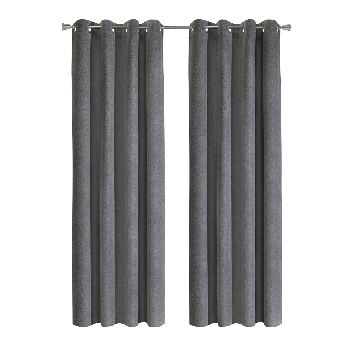 The Thermaplus Duo Reversible 100% Blackout Grommet Curtain Panel offers the perfect blend of style and function with its innovative reversible design. Available in sizes 52 x 63 in, 52 x 84 in, 52 x 95 in, and 52 x 108 in, and color combinations Black to Light Grey, these panels effortlessly transform your space. Crafted from faux linen with a 100% polyester front and back and a polyurethane middle, they deliver total blackout performance blocking 100% of incoming light. These curtains also provide superior thermal insulation, noise reduction, and UV protection, helping regulate temperature and save on energy costs. The elegant textured fabric pairs with smooth metal grommets for easy hanging and gliding, making these panels a versatile choice for any modern, formal, or casual décor.